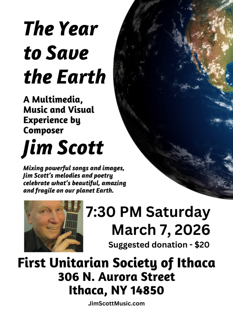 Mixing powerful songs and striking projected images, “The Year to Save the Earth” takes us from grieving to celebration to sustain life on our planetary home. Jim’s lyrical melodies and outspoken poetry celebrate what’s beautiful, amazing, and fragile about our Earth. In the FUSIT sanctuary.